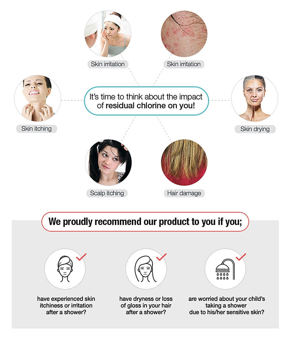 No other shower filters tells you exactly when to change the filter! The vitamin C chemically destroys toxins and is the most helpful product for skin problems in relation to the treatment of water as part of the solution. Vitamin C nourishes the skin.